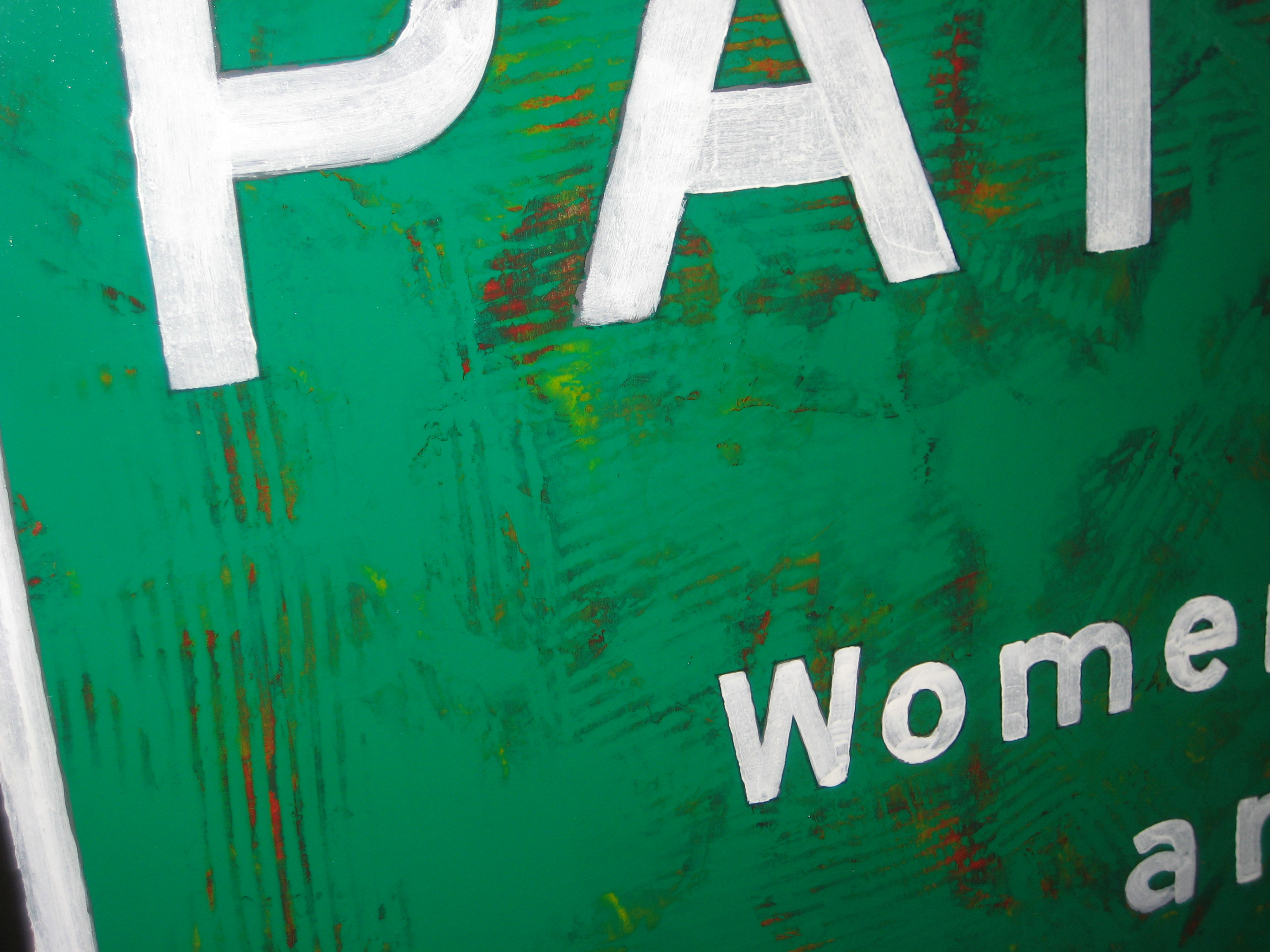Patriarchy: Happiness is Women w/o [an] Education and/or Clitorises. 2012. Acrylic on Panel. 18″ x 32″